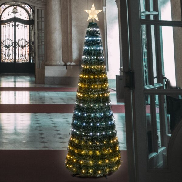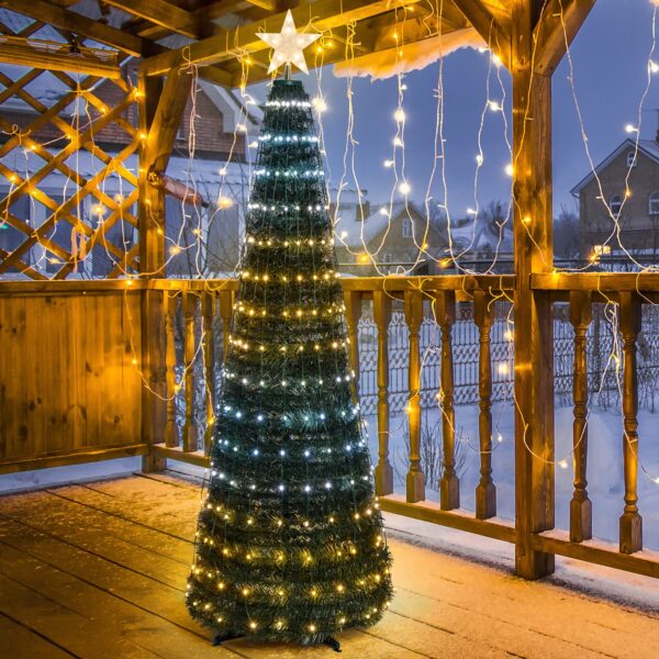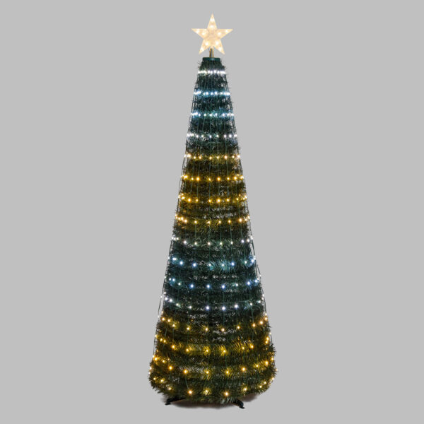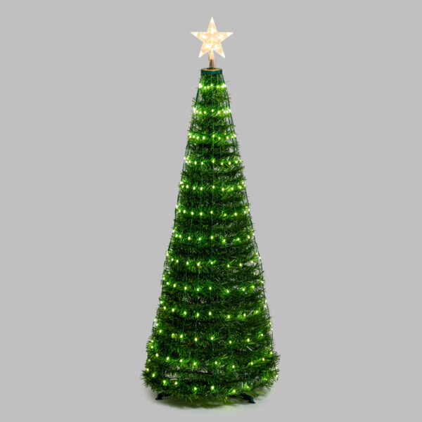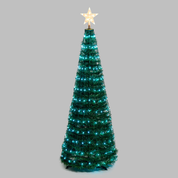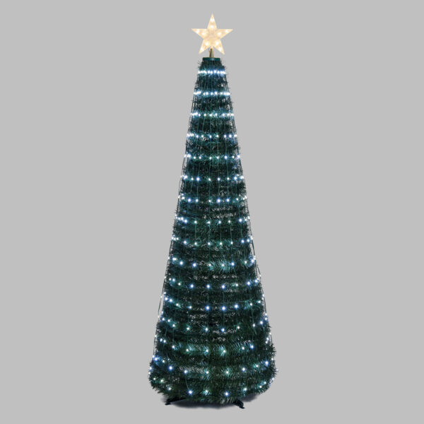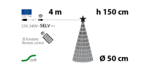 L’ Albero Conico CNP Pvc Verde H150cm è una soluzione che racchiude immediatezza e design per il tuo Natale. Allestito con ben 234 goccie LED bianco caldo e freddo ad alta luminosità controllabile tramite telecomando. Ideale sia per interni o esterni.